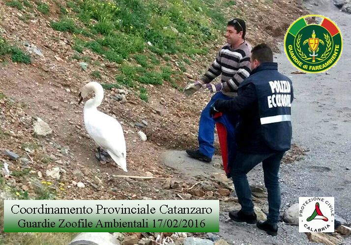 Falerna, cigno salvato da Guardie di Fareambiente