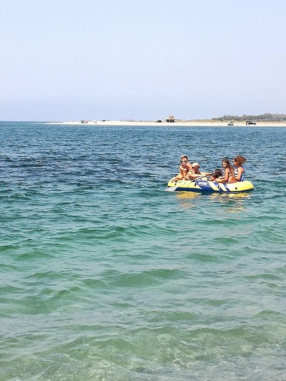 Una macchia blu che ha attirato la curiosità delle tante persone in spiaggia: grandi e piccoli a guardare le piccole alici saltellare.