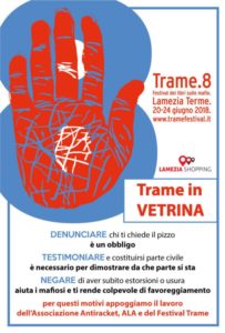 LAMEZIA TERME (CATANZARO) – Anche quest’anno l’Associazione Lamezia Shopping scende in campo per sostenere il festival dei libri sulle mafie organizzato dalla Fondazione Trame per l’ottava edizione. Nelle vetrine dei negozi del centro città, aderenti all’associazione, si potranno trovare i libri che saranno presentati durante il festival Trame che si terrà dal 20 al 24 giugno a Lamezia con una breve recensione.
