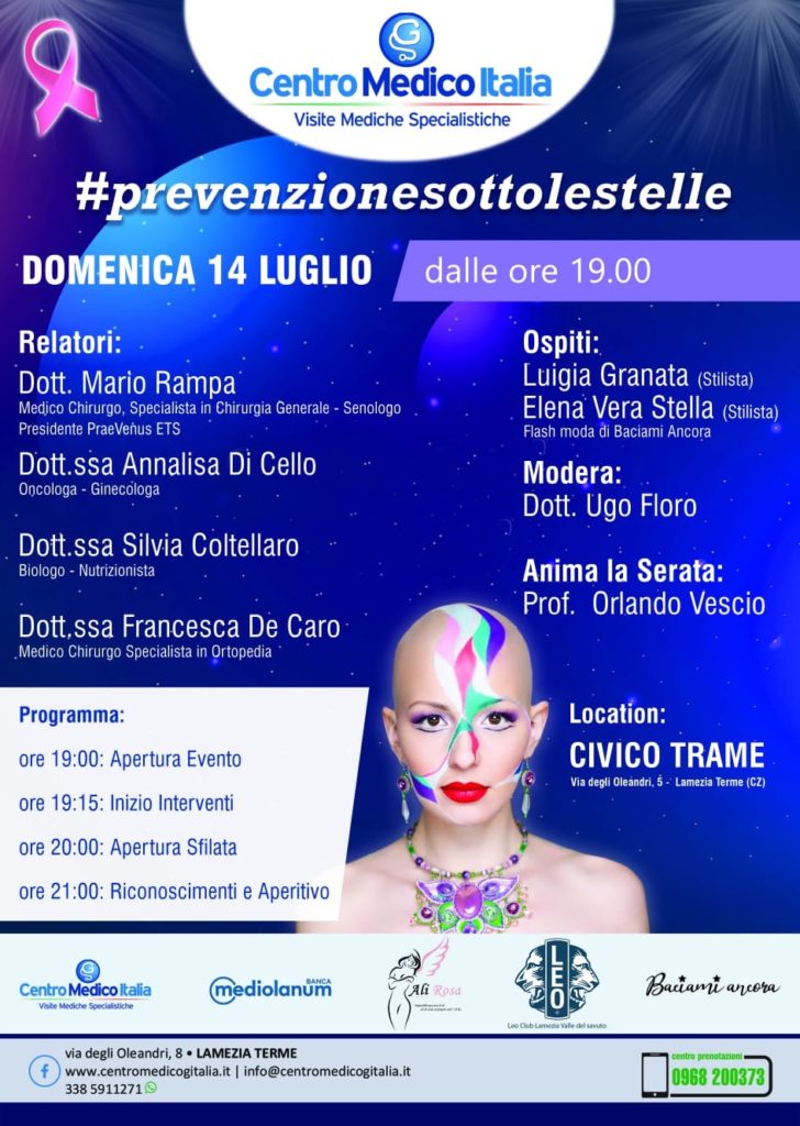 LAMEZIA TERME (CATANZARO) – L’importanza della Prevenzione come unica arma contro i Tumori è il tema dell’evento #prevenzionesottolestelle a cura del Centro Medico Italia per domenica 14 luglio.