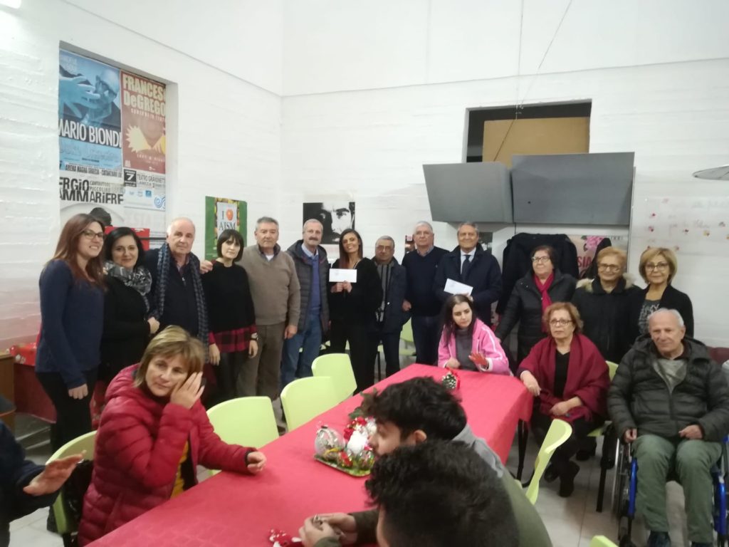 A partecipare all’iniziativa anche il vicesindaco Antonello Bevilacqua e l’assessore Luisa Vaccaro. Sempre durante la visita alla sede Aism è stato consegnato l’assegno per l’associazione Sassolini Onlus alla componente del sodalizio Angela Isabella che da anni fa volontariato in corsia tra i piccoli pazienti affetti da patologie oncologiche. I destinatari delle donazioni hanno ringraziato l’associazione San Nicola per l’attenzione avuta per queste due importanti realtà.