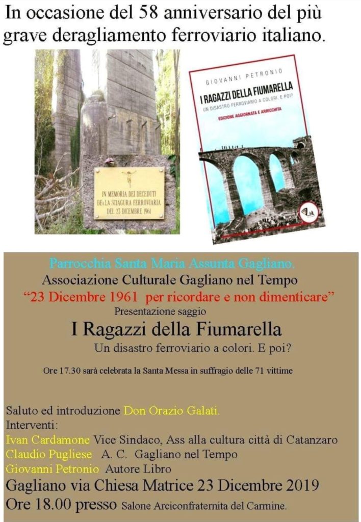 Si tratta del più grave deragliamento ferroviario italiano e Giovanni Petronio con il suo libro “I ragazzi della Fiumarella” ha riportato alla memoria questa tragedia. Il suo scopo è stato quello di far “rivivere” le storie di quei ragazzi, attraverso un minuzioso lavoro di ricerca, tra parenti e amici. Una passione che lo ha spinto a pubblicare una seconda edizione, più aggiornata.