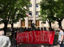 COSENZA – “Bocciamo il ministro non gli studenti” è lo striscione esposto dagli studenti cosentini stamani in piazza XI Settembre a Cosenza.