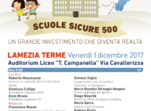 LAMEZIA TERME (CATANZARO) – Il Ministro per la Coesione territoriale e il Mezzogiorno, Claudio De Vincenti, sarà presente il prossimo 1 dicembre 2017 al focus sul tema “Scuole