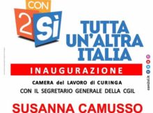 CURINGA (CATANZARO) – Domani, mercoledì 15 marzo, il segretario generale della Cgil Susanna Camusso parteciperà a due eventi per sostenere il referendum promosso dalla stessa Cgil “Due si