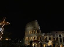 Francesco è giunto al Colosseo per presiedere la tradizionale Via Crucis che si ripete da sessant’anni alla presenza del Pontefice. Prende posto nella terrazza al Palatino, di fronte