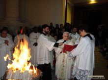LAMEZIA TERME (CATANZARO) – Con i caratteristi segni della benedizione del fuoco nuovo, dell’accensione del cero pasquale, della benedizione del fonte battesimale anche la Chiesa lametina ha celebrato