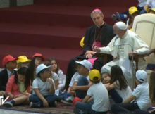 Le note di “We are the world” si alzano con forza nell’ Aula Paolo VI. Sono più di 7 mila i bambini che cantano in attesa di Papa