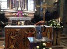 Omegna – Una Moka davanti all’altare, una di quelle con il classico «omino con i baffi» che dal Dopoguerra hanno fatto il giro del mondo. All’interno però non
