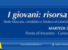 LAMEZIA TERME (CZ) – “I giovani: risorsa della città”. E’ il tema del confronto che si svolgerà alla presenza dell’avvocato Paolo Mascaro, candidato a sindaco alle prossime elezioni