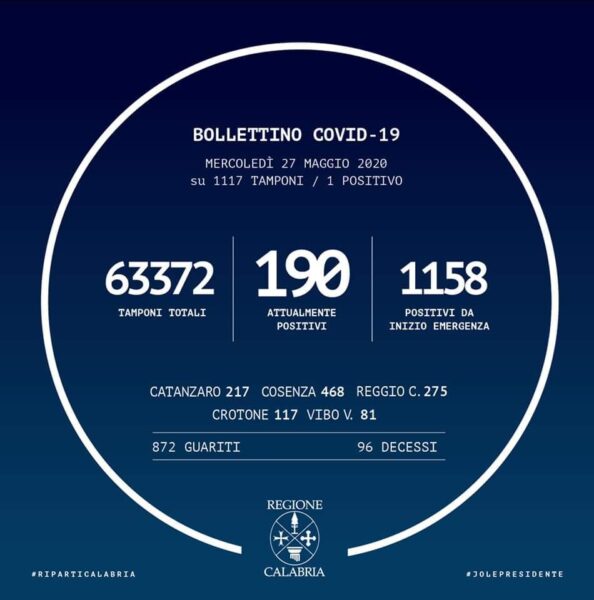 • 2 Febbraio 2021 Coronavirus, il Bollettino della Regione Calabria del 2 febbraio 2021: 33.108 (+166 rispetto a ieri)