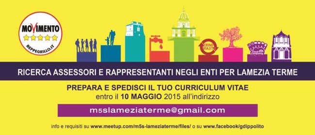 LAMEZIA TERME (CZ) – Come già annunciato, il M5S di Lamezia Terme candidato alle prossime comunali, ha deciso di scegliere gli assessori che andranno ad amministrare la nostra città e coloro che rappresenteranno il Comune negli enti e nelle società partecipate, non nelle segrete stanze dei partiti in base ad opportunità elettorali o logiche di scambio ma avviando una selezione aperta a tutti i cittadini in base al merito ed alle competenze.